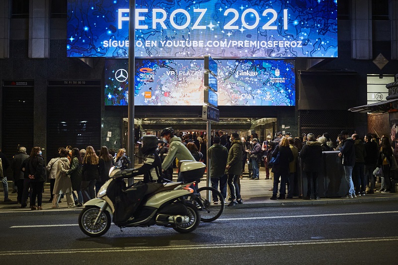 Nosotros queríamos el evento presencial porque venimos del mundo presencial, de eventos culturales, festivales, etc. que algunos de ellos han tratado de sobrevivir en tiempos covid, y los que hemos conseguido sacar adelante han sido un éxito sin excepción, y entendíamos que los Feroz, cumpliendo todas las normas de seguridad, podría ser un evento presencial como otros. Pero eso no habría sido bastante si no fuera porque la junta directiva de la asociación (que ya no pertenecemos a ella) también lo vio muy claro. Ellos se afirmaron en la importancia de la presencialidad, ya que la naturaleza de los Feroz, y en general de todos los premios, está muy vinculada a la dinámica del encuentro entre industria y prensa, que es una parte consustancial de nuestra organización. Y luego un tercer factor que no voy a ocultar, fue el tema de la financiación. Para unos premios institucionalizados como pueden ser los Goya o los Oscars la financiación está garantizada. Pero los Feroz, aunque cada vez están más consolidados de cara al público, todavía trabajan en la consolidación de su estructura, de su viabilidad financiera, y esta es un poco su debilidad. En esta edición no habría sido posible financiar la gala si no era con un evento presencial con su photocall en el que nuestros patrocinadores tuvieran su oportunidad de estar con las estrellas de cine y las series, aunque fuera con mascarilla.