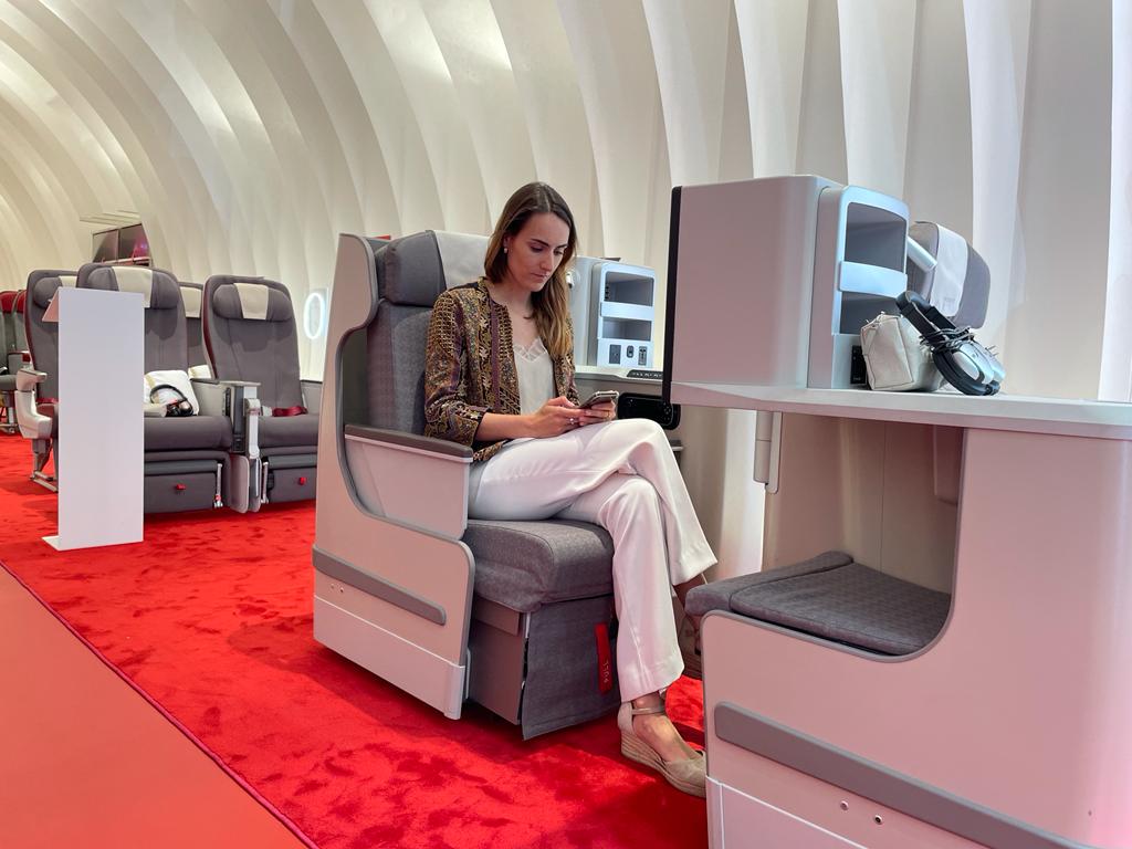 En el Espacio Iberia, de 350m2 y ubicado en Calle Velázquez (pleno centro de Madrid) se ha recreado la cabina de un avión, con dos butacas Business, cuatro de Turista Premium y otras cuatro de Turista. “El objetivo era acercar la experiencia de Iberia a la calle, que cualquier persona pueda ver, sentir y probar las novedades que estamos implantando”, nos cuentan desde Iberia.