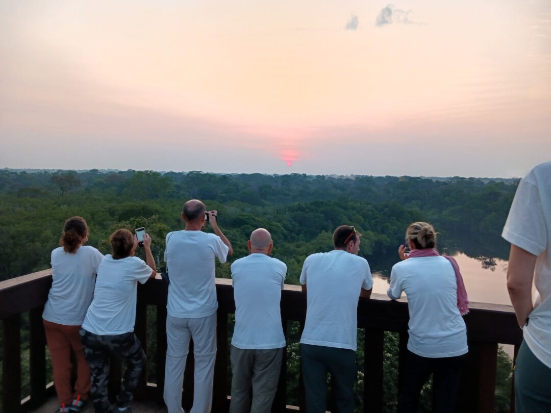 Así, presenciaron el fenómeno del Encuentro de las Aguas de los Ríos Negro y Solimões, en el que sus aguas recorren paralelas un largo trecho, sin mezclarse, hasta formar el río Amazonas; emprendieron un recorrido en canoa a través de los igarapés (arroyos) e igapós (bosques inundados), nadando, observando delfines y escuchando los misteriosos ruidos del bosque en el camino; y se adentraron entre los senderos del bosque, acompañados por un guía privado, que transmitió todos sus conocimientos de supervivencia en la selva, ofreciendo a cada paso explicaciones sobre la fauna amazónica, y mostrando plantas comestibles, medicinales y útiles para cualquier circunstancia que pudiésemos encontrar.