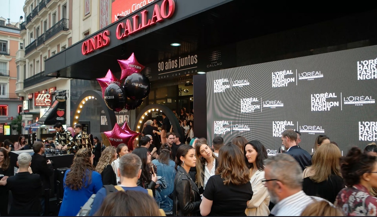 Con unas pautas claras desde internacional que marcan cómo deben ser las acciones que se monten a nivel local para celebrar la Hair Fashion Night, el equipo de L’Oréal Professionnel España tuvo que implementar las directrices internacionales del evento, pero adaptando algunas particularidades locales. Por ejemplo, era el primer año que se podía dar una toque de color a los peinados con la nueva línea de maquillaje instantáneo para el cabello. Así se creó durante el evento el servicio Colourfulhair Flash, para probar diferentes tonos y rematar el estilismo, que además se podían eliminar fácilmente con el lavado. Una tendencia, la del color en el pelo como complemento del look y por diversión, muy extendida entre el público millennial, un target al que se cuidó especialmente en el evento y al que se le facilitó el poder compartir en redes sociales una cita tan especial. Por un lado, abriendo el evento a la calle, con lo que se montó en el exterior de la plaza Callao un escenario con varios puntos de peinado donde el público podía seguir los cambios de look y los peinados que llevaban a cabo los estilistas. No faltó tampoco una alfombra roja para poder ver de cerca a las embajadoras de la marca invitadas: Hiba Abouk, Juana Acosta y Andrea Duro; junto con otras celebrities e influencers invitadas que asistieron al evento. Y también en el exterior, estuvieron pinchando el dúo de djs Pepino Marino y Crawford, animando al público en la plaza con temas divertidos y llenos de energía.