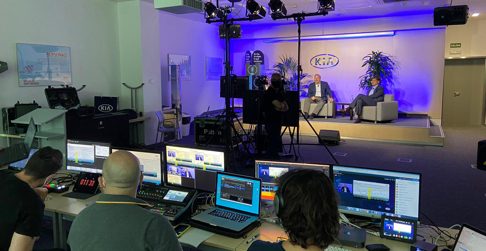 La marca de coches KIA apuesta por los eventos desde un plató con Auriga al mando. La agencia ha creado y organizado para la marca la acción “KIA 100% recargados”, una reunión digital para toda la red de concesionarios KIA de España que, tal y como nos aseguran, se repetirá periódicamente una vez al trimestre. El objetivo es informar a todos los concesionarios de las novedades y mantenerles actualizados de las cifras de la marca. La primera de estas reuniones tuvo lugar en la sede de KIA en Madrid donde Auriga instaló todo un plató efímero, como no, con todas las medidas de prevención: mascarilla, distancia, gel, limpieza exhaustiva… “Montamos un set de grabación para acoger a tres directores encargados de ofrecer en directo la charla y presentar las cifras actualizadas de la marca a los asistentes a distancia”. De media se conectaron 250 personas que pudieron, según nos cuentan, hacer preguntas en directo a través de la plataforma y ver otros vídeos y materiales de interés. El objetivo de KIA era básicamente uno, informar a todos los concesionarios, por eso desde Auriga nos explican que confían en este formato para conseguir ese canal de información.