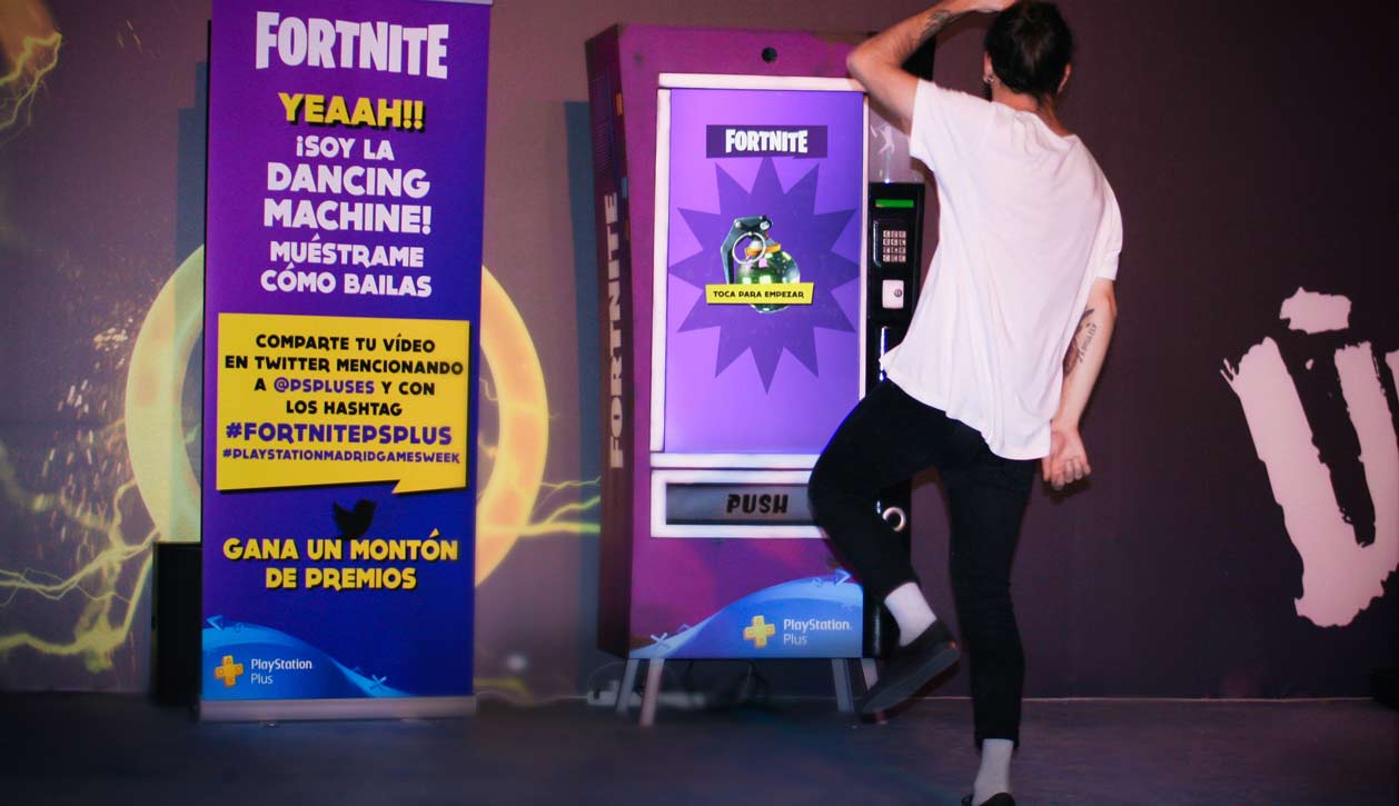 Fornite Dancing Machine. TBWA aprovechó el boom de los pasos de baile que los jugadores al Fornite pueden trasladar al mundo virtual a través de su avatar para inspirarse en la activación que protagonizó el stand de PlayStation en la feria Madrid Games Week. Los visitantes podían escoger una coreografía en la máquina expendedora y grabar su baile frente a su cámara; pudiendo compartir desde ahí mismo sus movimientos en redes sociales y entrar en el sorteo de premios.