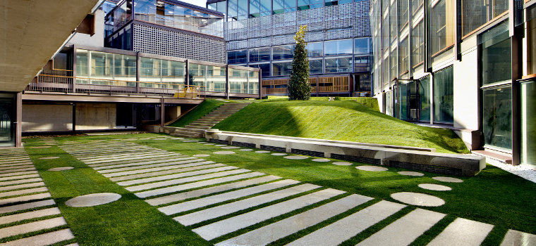 La terraza del COAM, al ras del suelo y rodeada de plantas