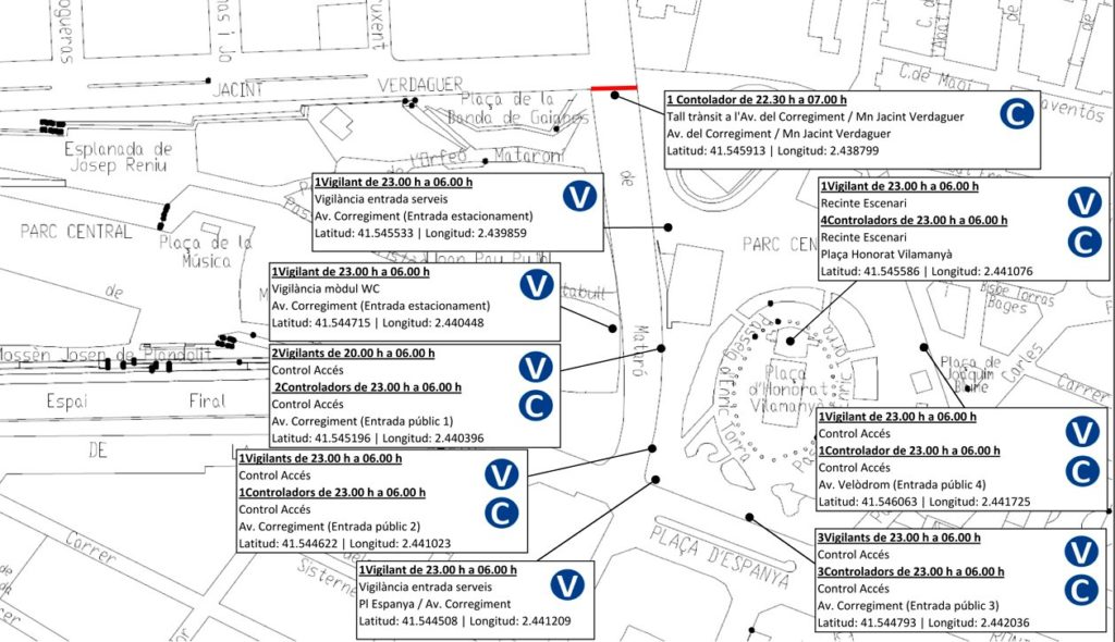 - Cuando planifiques el evento, ten en cuenta que la seguridad abarca el montaje y desmontaje, por lo que tienes que disponer de un permiso para tener vigilancia en la vía pública, previa solicitud y pago de tasas.