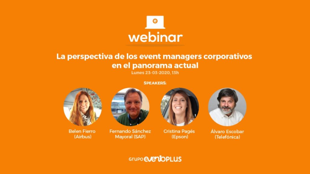 En este webinar participaron Fernando Sánchez Mayoral, Director Global Tradeshows SAP SE; Cristina Pagés, Events Manager EPSON Ibérica; Álvaro Escobar, Responsable de Eventos B2B en Telefónica España; y Belén Fierro, Responsable de protocolo y eventos Airbus España. Y la primera pregunta era obligada.