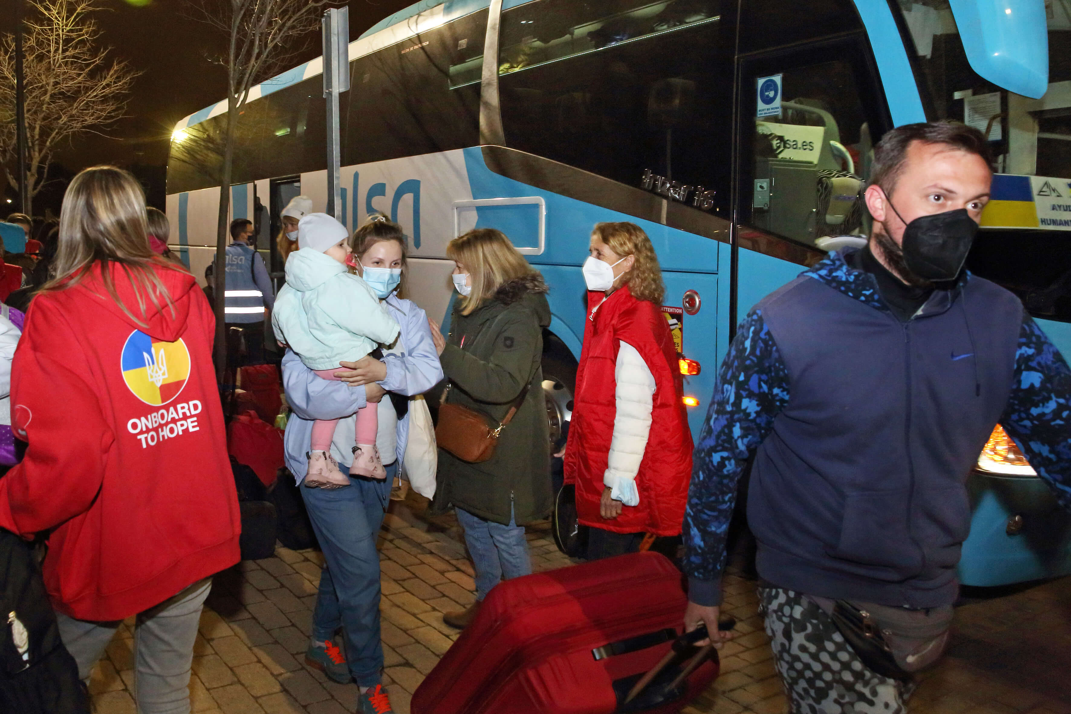 En colaboración con la ONG Infancia de Nad, partieron de Sevilla el pasado 9 de marzo dos autocares de Rosabus. Según nos cuentan, dejaron en Cracovia toneladas de alimentos, ropa y productos de higiene para los ucranianos y trajeron un centenar de refugiados, fundamentalmente niños, adolescentes y mujeres, que se quedarán en Madrid bajo la responsabilidad de las instituciones que el gobierno ha creado para tal fin. En la expedición se encontraban dos médicos y dos enfermeros del Hospital Santa Ángela Viamed, además de ocho conductores que se turnaron para evitar paradas en los 7.500 km del recorrido previsto.