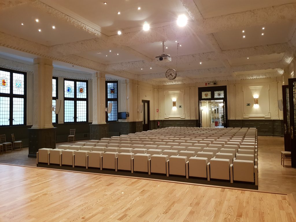 Inicialmente destinado a salón de billar y originalmente decorado por la casa Waring & Gillow de estilo renacentista inglés, hoy en día ofrece una gran versatilidad para eventos corporativos. Con un auditorio de 208 butacas retráctiles, es la opción perfecta para presentaciones y conferencias.