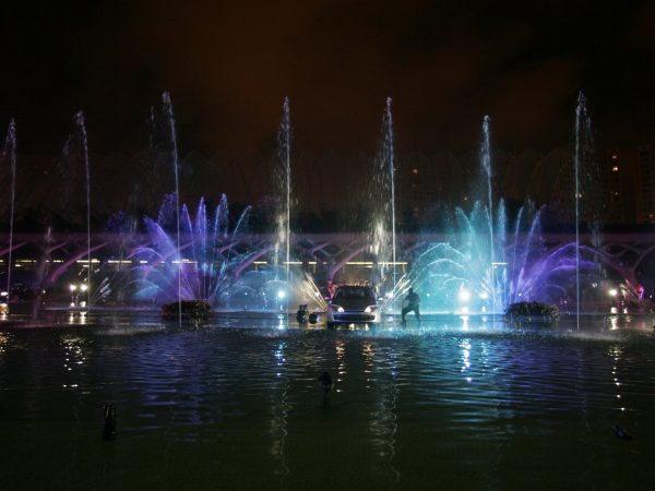 Tras la jornada de trabajo, por la noche, montaron para la presentación del Laguna un espectáculo por la noche en la Ciudad de las Artes y Ciencias, jugando de nuevo con el concepto del agua. Estuvieron 3 días poniendo tarimas debajo del agua, justo un dedito por debajo, de forma que los bailarines bailaban y parecía que andaban sobre el agua de noche. Quizás lo más espectacular fue cuando pasaron coches a toda velocidad por ese camino, pareciendo también flotar sobre el agua y generando una impresionante ola. Era de noche y aquello reflejaba mucho. Hicieron este show cuatro noches seguidas. Siguieron actuaciones de Carlinhos Brown y Sara Baras. “Si hoy vas a la al Museo de las Artes en Valencia, hay dos cristales todavía con una raja en medio de arriba abajo de la potencia sonora de la actuación de Carlinhos Brown”.