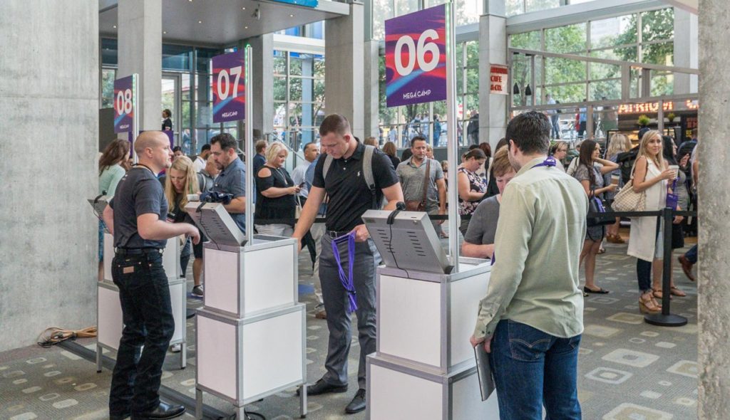 El proceso es simple. Una cámara conectada a los quioscos del check-in reconoce a los asistentes registrados por reconocimiento facial. Cuando encuentra una coincidencia, el sistema da un mensaje de bienvenida con su nombre e imprime su acreditación en seis segundos.