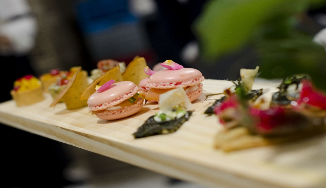 El catering como herramienta de comunicación. Los platos iban enmarcados con una mezcla de sabores y texturas asociados al mundo de las flores. Según Víctor Cid Branger de Espacio Bureau (gestor del espacio), “el catering estuvo al cargo de Be Chic (el catering oficial de Palacio Neptuno) con una puesta en escena muy floral, y estuvo orientado a los sabores relacionados con las rosas. Alguno ejemplos fueron las ‘mil hojas de brandada de bacalao y naranja amarga, con pétalo’, las ‘costillas de cerdo, cremoso de batata, con aire de rosas’, el ‘coulant de chocolate con frutos rojos y papel de rosas’, o la ‘tartaleta de gorgonzola dulce, chutney de mango y pera deshidratada en polvo de rosas’.