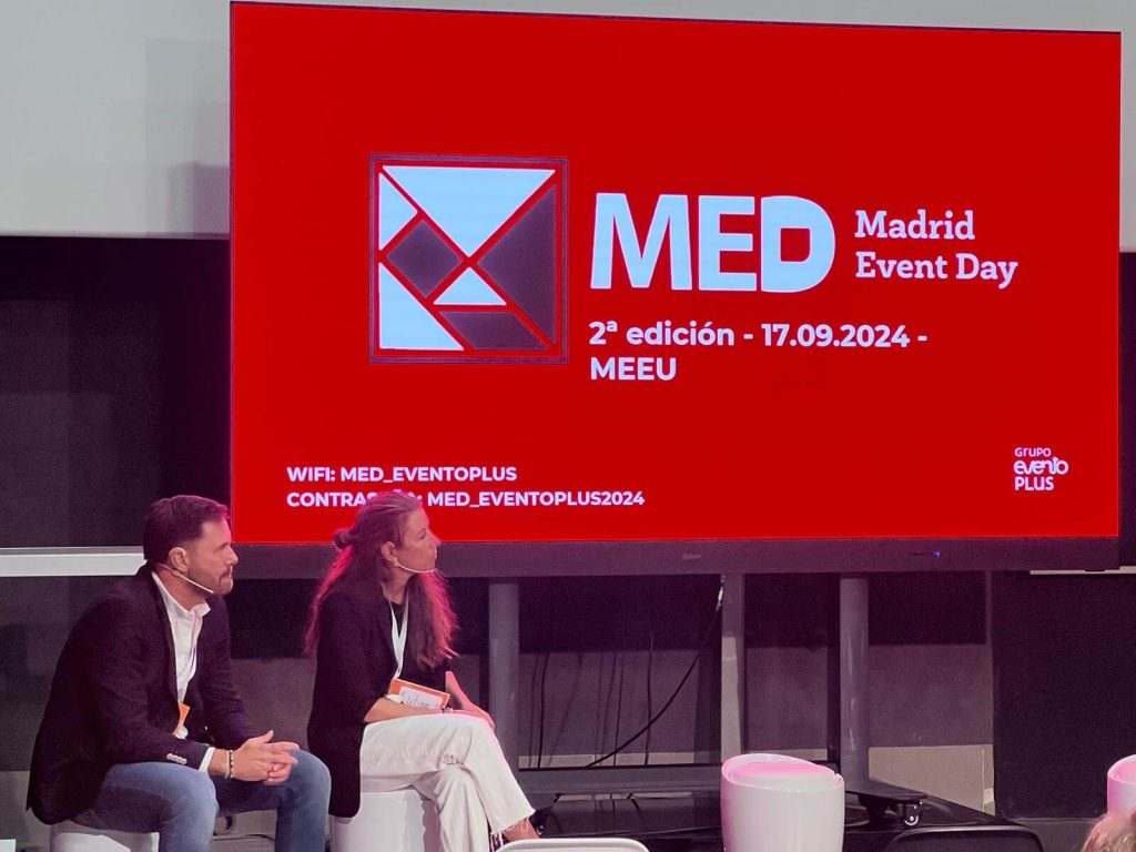 Al tiempo que estas reuniones tenían lugar, el MED también se convirtió en un espacio de conocimiento sobre eventos. Para ello, se organizó un coloquio protagonizado por Margarita Calvo, client & business director de SOMOS Experiences, y Jesús Tenorio, director de producción de BEON. Calvo y Tenorio hablaron sobre la retransmisión y celebración de la victoria del Real Madrid en la Champions 2024 (evento organizado por SOMOS Experiences y plata de los premios eventoplus 2024 en la categoría de Mejor evento de celebración) y del pabellón Andalusian Crush preparado para Fitur 2024 (evento organizado por BEON junto con Grupo Absolute y plata de los premios eventoplus 2024 en la categoría de Mejor feria / participación en feria). Durante esta charla, además, se abordó la necesidad de implicar a la producción en la fase creativa y se trataron los retos que genera la creatividad en el directo.
