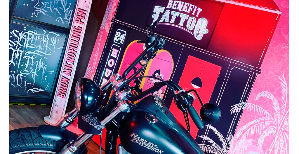 La imagen única de Benefit, junto con la campaña creada para el lanzamiento, permitió jugar con una decoración atrevida de estilo “pin up”, donde los tatuajes, las motos y las cejas fueron la orden del día. Acorde con este concepto, a las invitadas se les ofreció la posibilidad de realizarse tatuajes semipermanentes.