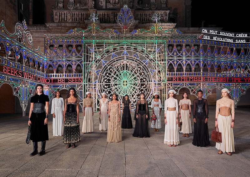 Para este desfile, la casa francesa ha contado con 110 modelos con perfiles muy distintos con los que Maria Grazia Chiuri (directora creativa de la firma) quiere reflejar la diversidad del mundo real y sobre todo para demostrar que Dior es una firma moderna, que apuesta por la inclusión, la tolerancia y el respeto a lo diferente. Chiuri es una de las grandes diseñadoras que se implica y lanza mensajes en todos sus desfiles, primando siempre un discurso feminista y sostenible. ¿Un ejemplo? En uno de los desfiles instaló una decoración floral con 500.000 claveles y rosas.