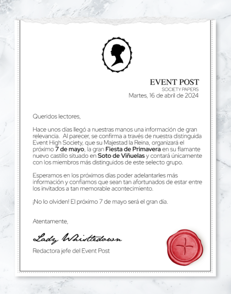 La invitación directamente de “Su Majestad” la reina, en formato carta de la época, generaba intriga, despertaba interrogantes y animaba a los asistentes a confirmar su asistencia. Un buen ejemplo de cómo generar expectación pre-evento a la vez que se destaca su relevancia. Nadie va a querer perdérselo con una invitación así…
