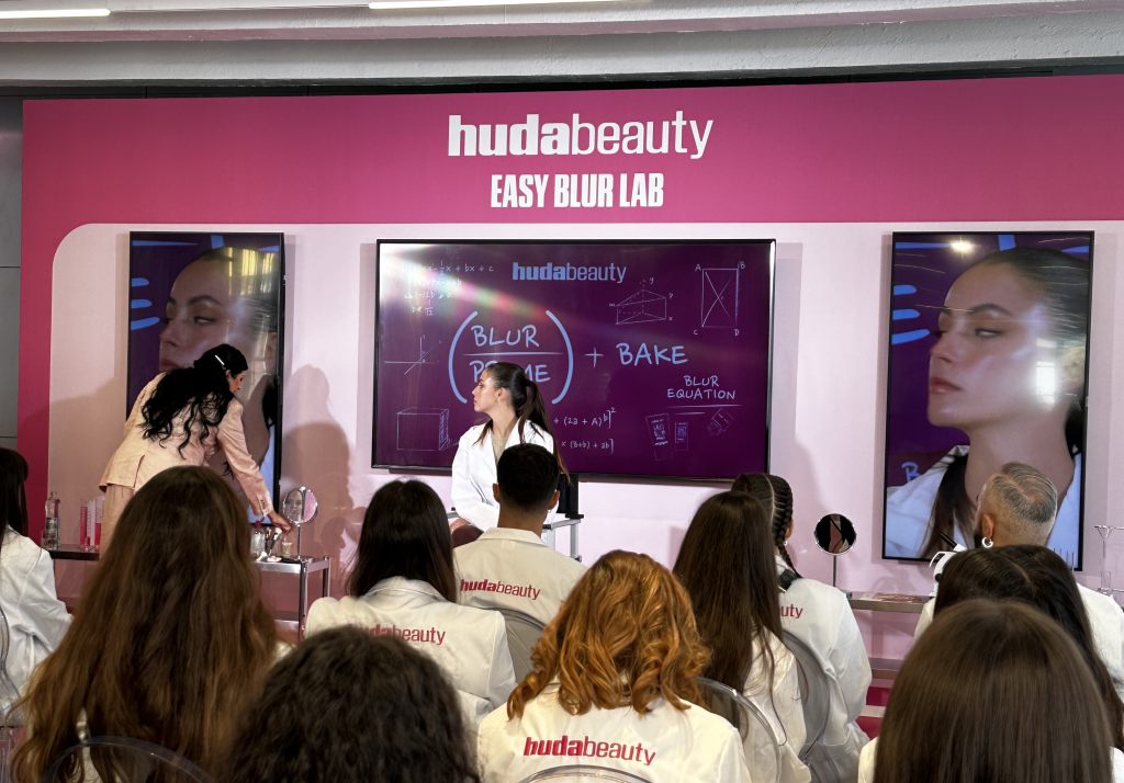 Según nos cuentan desde la agencia, durante años, las principales marcas de cosmética han buscado asociar su imagen con el concepto de lo natural, evitando reconocer abiertamente que sus productos también contienen sustancias químicas. Además, marcas como Freshly Cosmetics, Herbal Essences o Apivita han definido su imagen en torno a la naturaleza. Sin embargo, otras como Kiehl’s han empezado a desafiar el estigma de que lo químico es dañino o menos efectivo que lo natural en el cuidado de la piel. En este contexto, el equipo de Huda Beauty decidió centrar su concepto creativo en un laboratorio y así sumarse a la tendencia en eventos de marcas como Nivea, Color WOW o Shisheido de los últimos años, destacando las virtudes de estos compuestos.