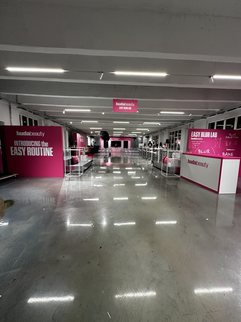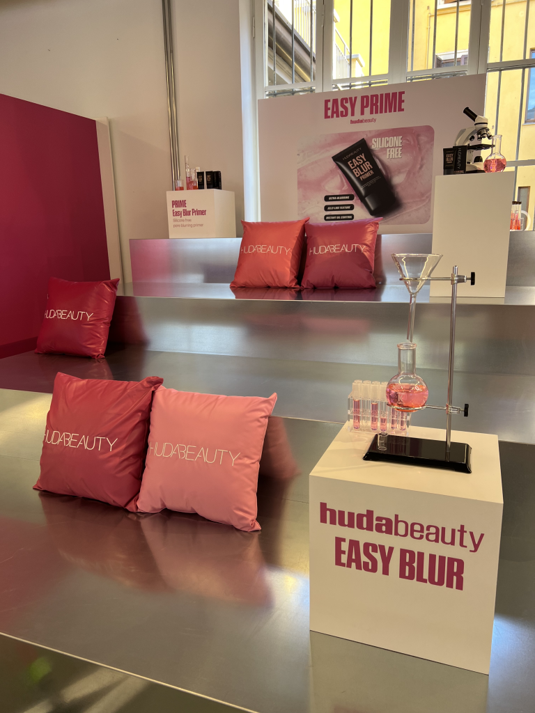 El Baúl de las Piqué, que ya había trabajado con Huda Beauty en otros proyectos, se enfrentó al desafío de trasladar su experiencia organizativa a un país nuevo. La agencia tuvo que buscar desde cero localizaciones y proveedores que se alinearan con los altos estándares de la marca. El evento se realizó en la famosa galería de arte Corso Como 10, un espacio que combinaba el estilo industrial con grandes ventanales y un toque de laboratorio, cumpliendo perfectamente con el concepto que el cliente tenía en mente.