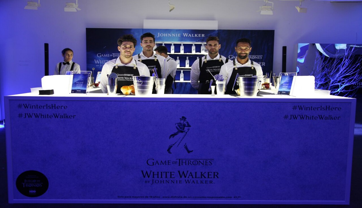 ¿Inspiración del evento? Asociar la imagen de la marca con un producto televisivo de éxito como Juego de Tronos supone una buena combinación. Se generó una historia basada en el concepto ‘helado’ donde ambos coincidieron para promocionar la bebida durante el evento. La historia dice así: ‘con sus helados ojos azules y dirigidos por el rey de la noche, los temidos caminantes blancos han servido de inspiración para crear esta edición limitada, elaborada por el masterblender George Harper, que se sirve directamente del congelador y cuya botella revela un mensaje’.