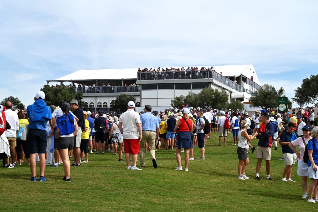 Uno de los aspectos que destacó a nivel experiencial entre los VIPs fue la ubicación y diseño de la carpa de hospitalidad: situada entre los hoyos 16 y 17, con vistas incluso al 18, abierta por los cuatro costados y con una gran terraza en altura, constituía el lugar idóneo para vivir en directo el desenlace de los partidos. Este detalle, que podría parecer de escasa importancia sobre el papel, supuso un nivel de satisfacción entre los VIPs muy por encima de lo habitual en este tipo de evento -suelen ser carpas cerradas sin vistas al juego-, ya que en todo momento formaron parte del ambiente del campo.