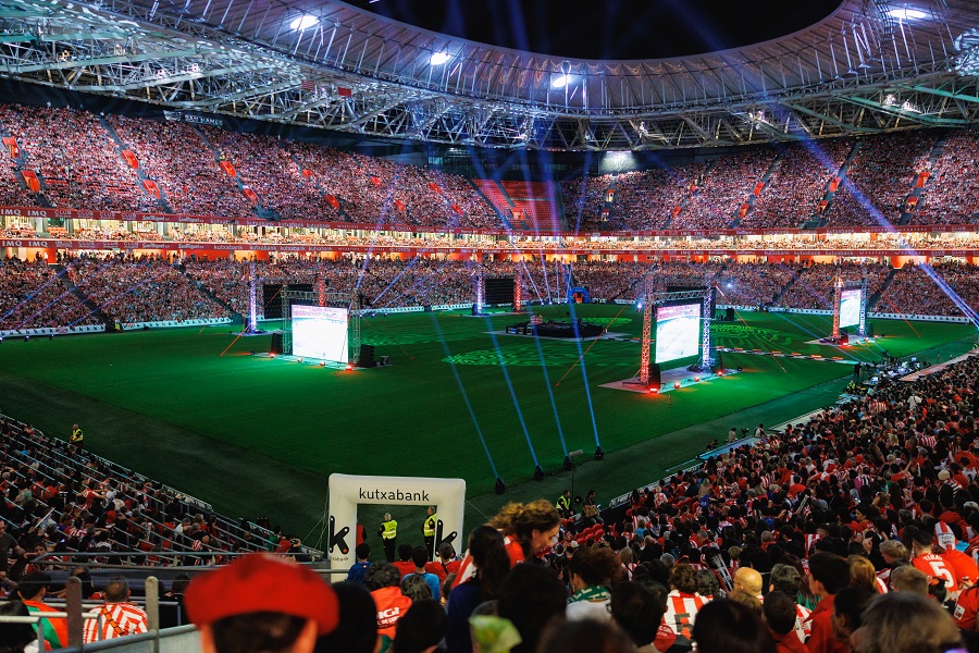 50.000 ‘leones’ acudieron al evento organizado en el estadio San Mamés de Bilbao para ver el partido y compartir el momento por el que llevaban esperando más de 40 años. El evento fue resultado de un concurso que también dependió de una pelotita, la que entró el 29 de febrero cuando el Athletic ganó la semifinal y a partir de ese momento se activaron las cosas, porque es el ‘peligro’ que tienen los eventos relacionados con el deporte, nunca sabes si vas a ganar. “Fue entonces cuando todo se aceleró”, cuenta Alberto de Larrucea (Innevento), “el Athletic saca un concurso restringido a tres o cuatro empresas el 6 de marzo y el 14 debíamos entregar la propuesta, es decir, seis días después”.