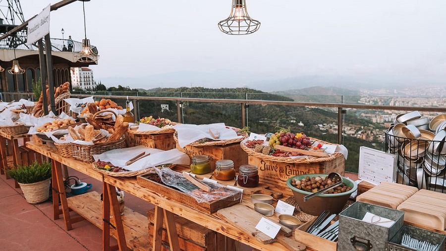 También el catering fue sostenible. Para continuar con la inmersión en Barcelona, recrearon el Mercado de La Boquería reproduciendo algunas de sus clásicas ‘paradas’ como panadería, frutería y floristería. Además, contaron con un catering local basado en productos de km0, de temporada y ecológicos.