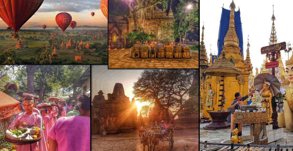 Alojamiento y salida temprano hacia la ciudad de Bagán. Desde el siglo IX hasta el siglo III, la ciudad fue la capital del Reino de Pagan, se construyeron más de 10.000 templos budistas, pagodas y monasterios en sus llanuras. Hoy en día aún permanecen los restos de más de 2200 templos y pagodas. A la llegada visitaron Nyaung U, el colorido mercado local lleno de frutas y verduras donde se experimenta la vida diaria, probaron sus frutas tropicales en puestos reservados para el grupo. A continuación, dieron un paseo en moto-trishaw para ir a visitar Shwezigon Pagoda, y por la tarde y después de una comida oriental basada en verduras, arroz, pollo y pescado con vistas al rio, “salimos en coches de caballos para ver un mágico atardecer desde la carretera de Bagan, rodeada de templos que transmiten paz y relajación”, nos señala José Suárez.