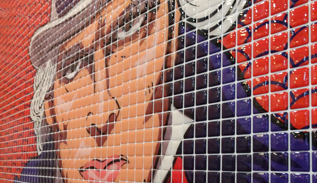 No son cerámicas sino resinas impresas para crear esta impresión de volumen tan característica. Una manera (¡vintage también!) de crear imágenes sorprendentes, que valoraremos especialmente en un mundo lleno de imágenes de altísima resolución. Son de Mosaico Digitale.