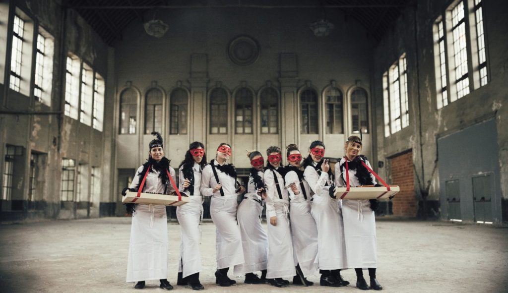 Una vez iniciada la cena, el Maestro de Ceremonias subía al escenario para llamar a los 25 empleados que habían participado en proyectos de innovación y que iban a recibir un reconocimiento por parte del presidente de la compañía. Siguiendo con la celebración, comenzaron los espectáculos del Moulin Rouge. El primer número «Diamonds» fue acompañado de una proyección con las fotos de los mejores momentos del 2017. Y, en el segundo número, tango Roxanne, se proyectaron las fotos del photocall. Los números circenses con telas aéreas y el baile del can can ponían fin a esta fiesta temática en la que tampoco faltaron los zancudos, mimos y malabaristas.