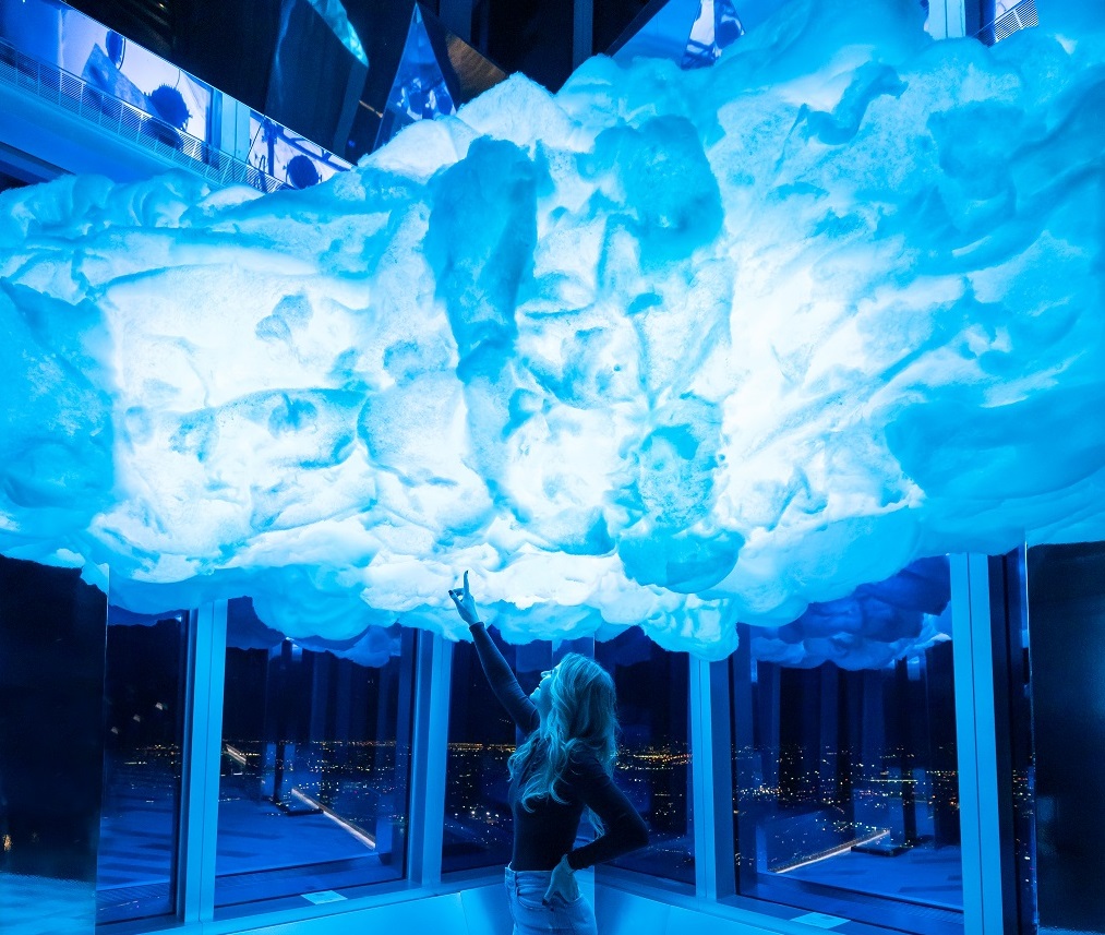 Throughout March, Skylight has continued indoors with a large-scale cloud display and light projection transporting guests into an illuminated sky. It included a special space with cloud included (see photo), where people could immerse in this magical atmosphere and start taking their photos. During this time, special food and beverage inspired by the experience was available at the two indoor bars on Levels 100 and 101, for instance cocktails including marshmallows reminding of the clouds.