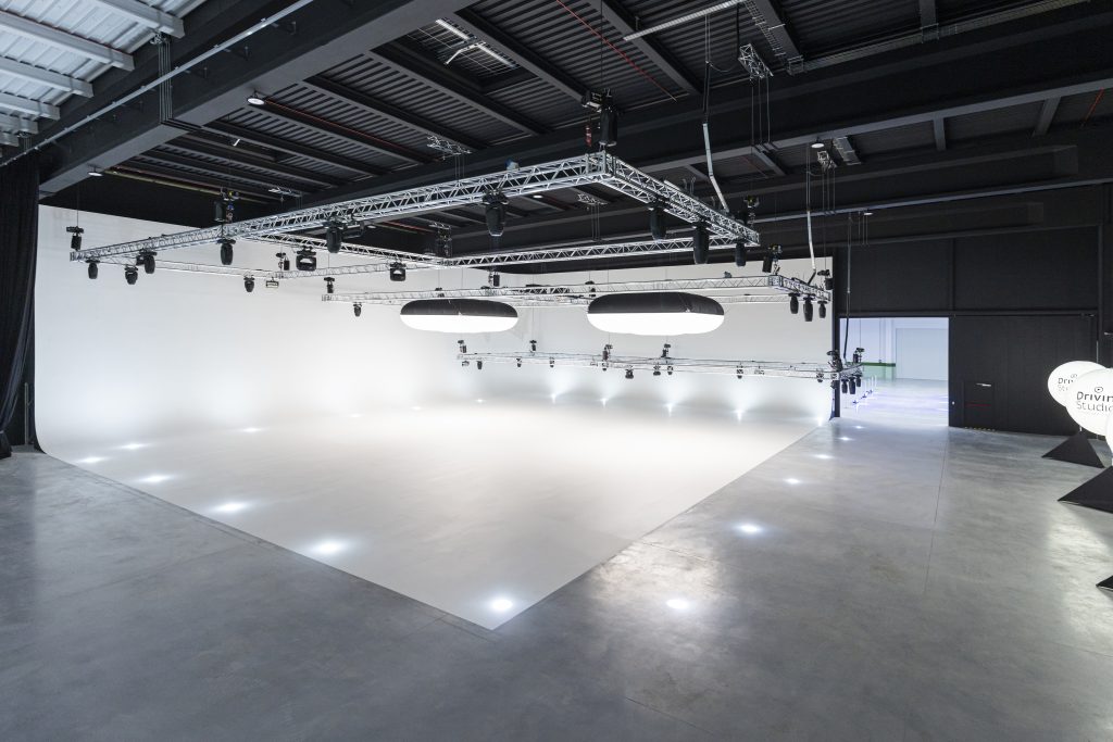 Su plató tiene 1000m2 y una altura de 10m en el que se ha construido un ciclorama en forma de L de 24 x 20x 8m (en total casi 500m2). Además, cuenta con una parrilla de tres islas Truss motorizadas que funcionan de forma independiente, subiendo y bajando desde el suelo hasta los 9m de altura, con una capacidad de carga de hasta 1.250kg cada una. A fin de obtener la mayor conectividad posible en este plató, también ofrecen un sistema de alimentación eléctrica independiente y un sistema DMX para conectar iluminación profesional provista por su colaborador especializado en el sector audiovisual, KINOLUX. Se completa con un sistema de raíles de 30m y una cortina de absorción acústica.