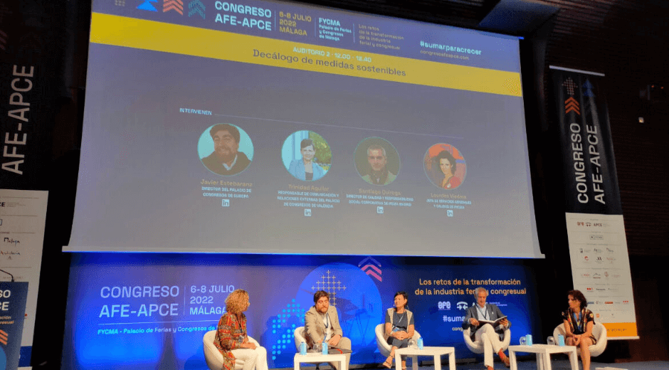 A lo largo de las tres jornadas, se han realizado varias mesas redondas y ponencias para reflexionar sobre temas medulares que afectan a la industria en la actualidad y repercuten en su desarrollo y evolución. La sostenibilidad tuvo un papel destacado, al ser un gran reto y una oportunidad de este sector: se han puesto en común diversas prácticas y experiencias que se pueden implementar para lograr modelos más sostenibles en los recintos. Una tendencia que es a la vez una absoluta necesidad estratégica, y una oportunidad de diferenciación… y de ahorro, en la era de los costes de la energía por las nubes. Una mesa congregó a Clara Arpa, presidenta de la Red Española del Pacto Mundial de Naciones Unidas y con representantes de ferias y palacios de congresos de Vitoria-Gasteiz, Valencia, Madrid y Málaga.