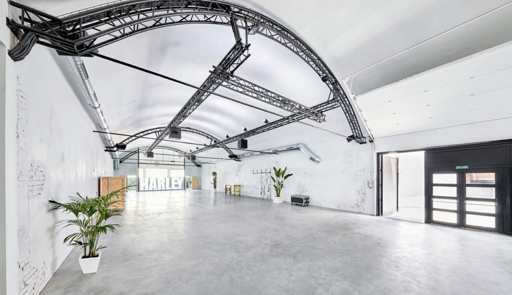 Como su hermano de Chamberí, su punto fuerte son los shootings y los rodajes, pero lo diáfano y neutro del espacio se presta igualmente para presentaciones y demás eventos. Cuenta con una sala multidisciplinar de 30×10 y con una altura de techos que va desde los cuatro a los casi siete de la bóveda central. Espacio Harley tiene una capacidad para 280 personas en teatro o montajes para 350 asistentes en cóctel.