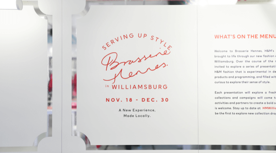 Para su estreno H&M ha querido hacer un homenaje a las fiestas de Navidad con la «Brasserie Hennes», una puesta en escena inspirada en una invernal brasserie francesa. El espacio contará con las colecciones navideñas de la marca, así como con un mercado formado por comerciantes locales que venderán sus productos de temporada como aromas, artículos del hogar, piezas vintage, alimentos gourmet o accesorios y productos de belleza, entre otros. Además de todos los productos disponibles, la tienda también será un espacio lleno de actividades para los consumidores pensadas para mejorar su experiencia.