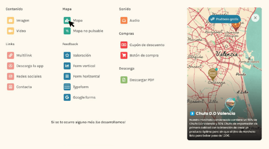 Otra de las ventajas de Kites es que se ha diseñado para que estas landings puedan integrarse sin problema con los editores web más comunes (WordPress, Shopify, Wix, etc.). En este sentido, ofrecen la posibilidad de integrarlo directamente en la página web del cliente o crear un nuevo dominio. Por otra parte, tanto el link como el QR que se generan son totalmente personalizables y pueden adaptarse a la imagen corporativa de cada empresa. Además, ofrecen la opción de cambiar el idioma en función de la procedencia de cada usuario y, tener la posibilidad de programar diferentes slides para que se vayan publicando cuando convenga.
