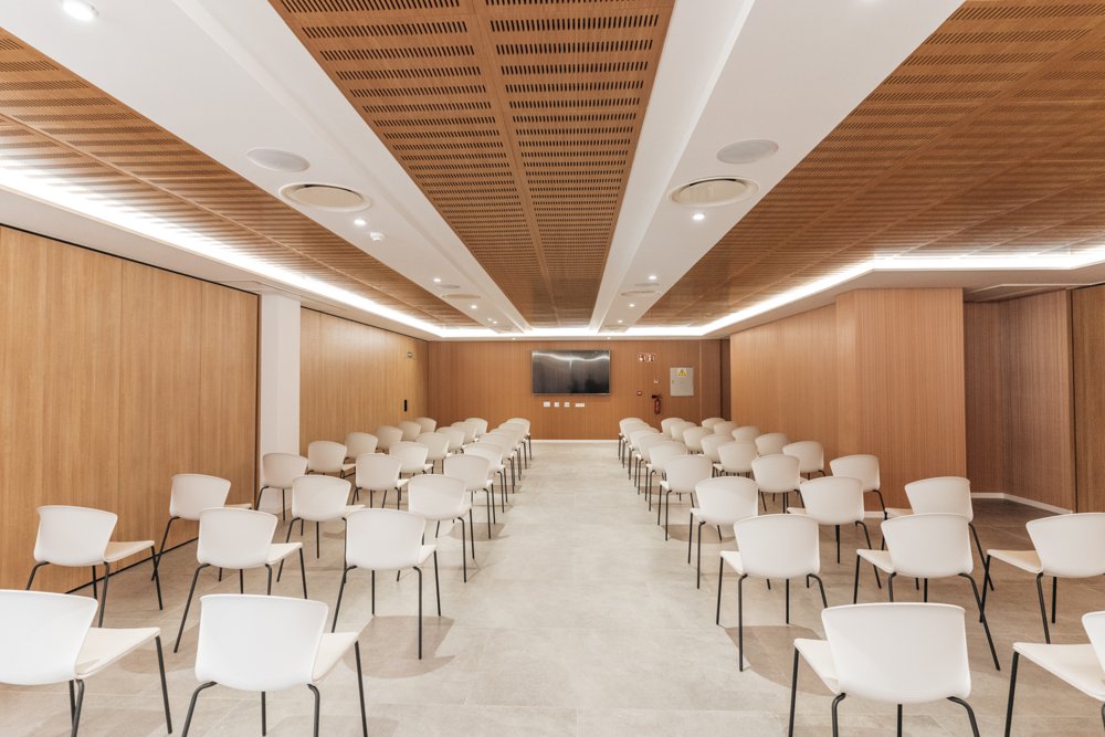 The Core, un espacio central entre las torres de 15.500 m2, alberga 6 salones multifuncionales para eventos: Ibiza (518m2), Dalt Vila (187m2), Botafoc (331m2), Formentera (355m2), Saona (139m2) y La Mola (216m2). Tal y como nos explican, la distribución de los espacios puede realizarse en formato banquete, escuela, teatro, cóctel y mesa en U, con una capacidad máxima de 400 personas en el salón Ibiza, el de mayor dimensiones. Todos ellos cuentan con luz natural y acceso a la terraza exterior con vistas panorámicas al mar.