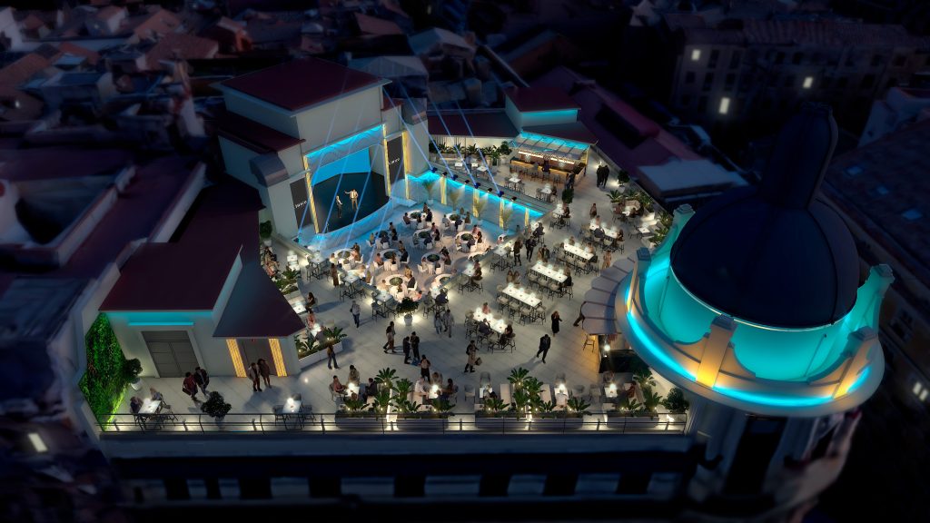 ¿Sabías que el Teatro Calderón cuenta con una terraza al aire libre en el corazón de Madrid disponible para eventos? El Rooftop Lírico es un espacio donde el arte escénico se extiende hacia el cielo. Dispone de 1.000m2, 550 m2 cubiertos y con un aforo permitido de 900 personas.