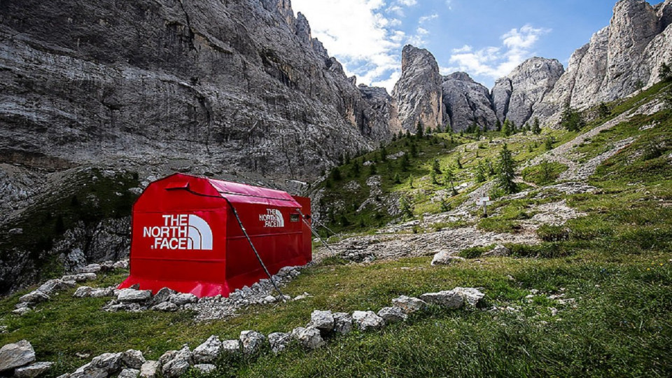 Si hablamos de una marca de ropa y equipación de montaña, su target anda pateando sendas y subiendo cumbres, así que el pop-up bien merecía montarse en las montañas. Y para conseguir esa singularidad que funcione de reclamo The North Face no dudó en plantar su pop-up en los Dolomitas a 2.100m de altura, en un campamento base al que solo se podía acceder tras una caminata de dos horas entre montañas.