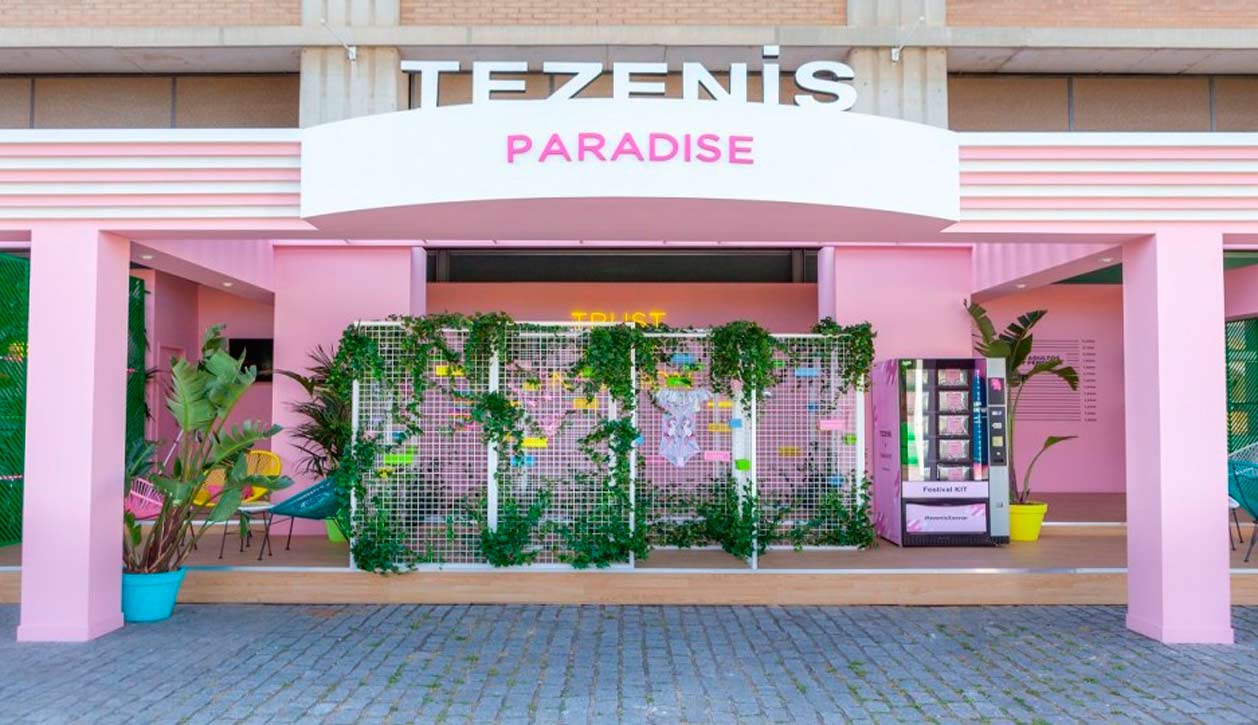Recorridos a prueba de instagramer, una colección especial y kit festivalero en el espacio de Tezenis en el Sónar. La agencia Mondolirondo fue la encargada de crear el concepto creativo, diseñar y producir el stand de la marca italiana de lencería y beachwear. Se creó un recorrido dentro del espacio, invitando a adentrarse a través de un laberinto de red metálica forrado de hiedra en el que se podían ver las prendas exclusivas que la marca. Al llegar a la salida del laberinto, un gran neón amarillo les hacía elegir uno de los dos posibles caminos. Si se optaba por la salida de la izquierda, se encontraba con un túnel frondoso con diferentes tipos de plantas y el logo de la marca en un llamativo neón amarillo iluminado. Este túnel hacía su función de photocall en el que la gente se adentraba para que una cámara capturara su momento de diversión en movimiento. El resultado: un gif que los asistentes compartieron en sus redes sociales, creando contenido para la marca.