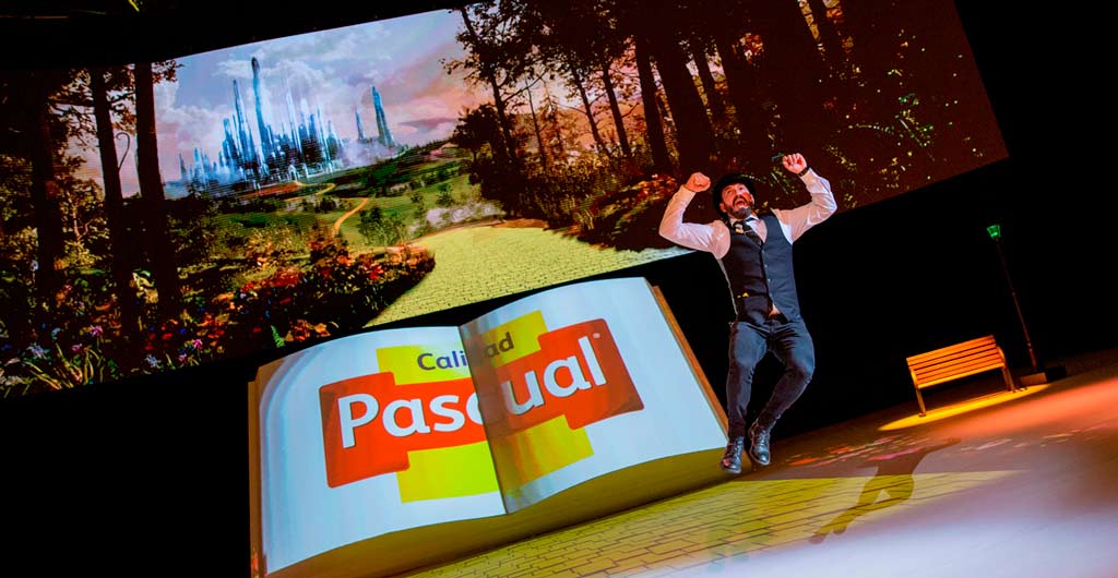 Amor por el cine y los nuevos formatos en la convención de Pascual. 1.200 trabajadores de Calidad Pascual entraron por un camino de baldosas amarillas a los estudios de cine creados solo para ellos en el Palacio de Vistalegre de Madrid. Un trabajo de diseño y producción por parte de Calidad Pascual y Staff Eventos para esta convención que pretendía ser especialmente innovadora y motivadora, con mensajes de fuerza hilvanados en grandes momentos del cine. El contenido (datos, mensajes, valores) se desarrolló a través de varias performances basadas en las historias y las bandas sonoras de éxitos como La, la, land. Incluso los directivos de la empresa se atrevieron a realizar sus presentaciones de estrategia por medio de historias creadas ad-hoc, con contenidos inspirados en momentos de amor y felicidad como Love Actually o El Mago de Hoz. Además, sobre un gran libro blanco de 7mx5m situado sobre el escenario se proyectó un mapping de forma que cobraba vida, escribiendo las nuevas páginas de Calidad Pascual además de mostrar los hitos de la empresa durante los últimos cincuenta años. Una generación de contenidos audiovisuales innovadores en 3D que se proyectaron sobre el suelo, el libro y la gran pantalla led circular contenidos en 3D, contando una gran historia con un reloj como eje narrativo.