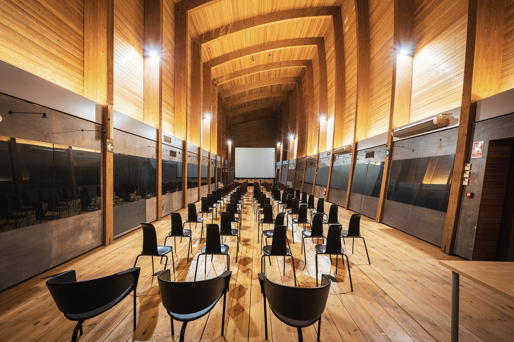 En el Pabellón de Finlandia, actual sede de FIDAS (Fundación para la Difusión e Investigación de la Arquitectura), hay tres espacios acondicionados para el desarrollo de eventos: ‘La Quilla’ un espacio en el interior de madera de 225m2 y 9m de altura, con un aforo para 175 personas; ‘Finlandia’ es un salón de actos ubicado en la bodega de La Quilla (en la planta baja), y, a pesar de que se encuentra conectado a la sala principal, cuenta con acceso independiente desde el exterior, además, cuenta con una superficie de 87m2 y un aforo para un centenar de personas; ‘La Máquina’, un espacio para impartir clases, jornadas o cursos de formación, y ‘KONE’, situada en otro volumen del Pabellón de Finlandia, encontramos esta aula de formación, una sala rectangular, que cuenta con una superficie de 65m2 y posee capacidad para hasta 20 alumnos.