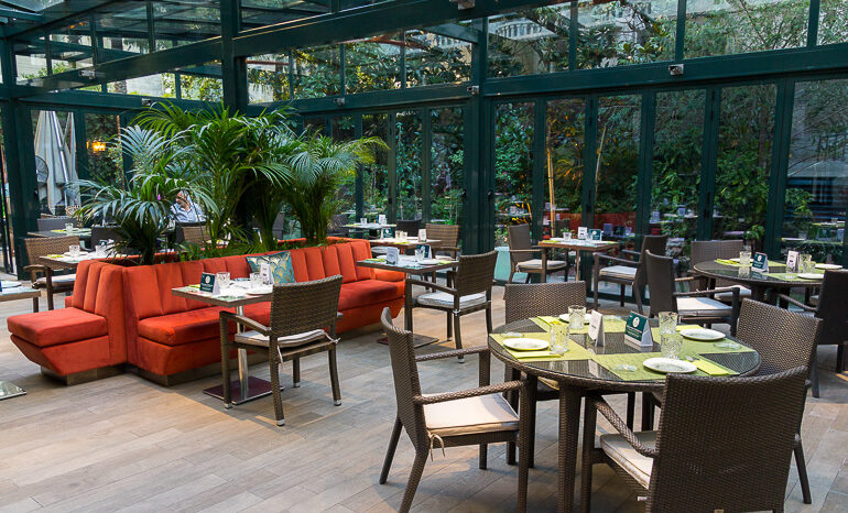 El restaurante Ginkgo Garden, con terraza acristalada, está repleto de vegetación y totalmente acondicionado para los 365 días del año. Además, el espacio ofrece experiencias gastronómicas. Además de poder celebrar comidas de empresa, agradables veladas, o simplemente leer un libro o tomar un café rodeado de abundante vegetación.
