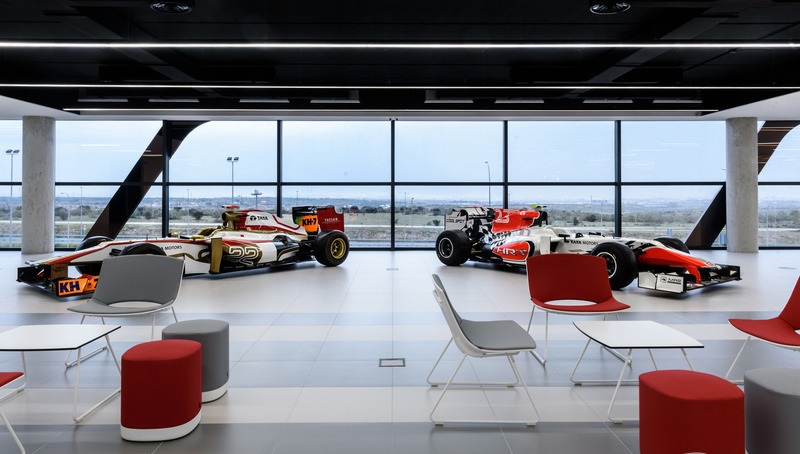 El espacio madrileño, concebido como un centro de alto rendimiento en el ámbito de la ingeniería de la automoción y la competición, cuenta con 15.000m2 donde se imparte formación universitaria, preparación para pilotos de Fórmula1 y Motorsport, cursos de pilotaje o mécanica del vehículo, junto con una academia de eSports. Dentro de este mundo donde se respira velocidad y adrenalina, también hay espacios de reunión y formación. Desde un hall de entrada de 300m2 y con una altura de 8m, una sala eSport con gradas y 10 simuladores de competición donde poder desarrollar dinámicas de teambuilding realizando competiciones de velocidad entre los participantes, a una colección de 75 joyas del automovilismo, las posibilidades de los espacios permiten tanto la formación indoor, como outdoor. Por ejemplo, en los 2.000m2 de pistas exteriores se pueden recrear la actividad de un paddock, vivir la experiencia de un equipo de competición o realizar copilotajes y cursos de conducción segura.