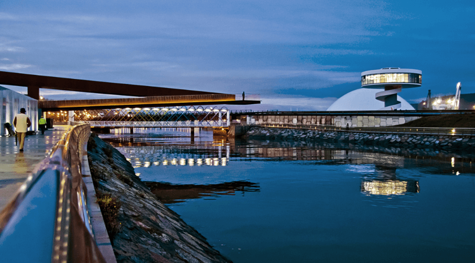 Pero como te digo, no solo hay viejas glorias (dicho en el mejor de los sentidos), también hay algunos venues que destacan por su modernidad y propuesta disruptiva. Uno de ellos es el Centro Niemeyer, un espacio ubicado en la ría de Avilés y fue diseñado por Oscar Niemeyer. El arquitecto lo planteó como un espacio de 22.000 m2, donde conviven varias edificaciones: el edificio polivalente, donde se encuentran las salas pensadas más para reuniones; el auditorio, que permite realizar eventos encima del escenario y que conecta a través de la trasera del teatro con el exterior (un auténtico factor sorpresa); la cúpula, principalmente un espacio expositivo, pero con posibilidades para eventos y, la torre, ahora mismo sede del restaurante Yume, que da una perspectiva 360º de la plaza a 20 m de altura.