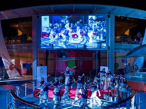Así, en un crucero de seis días por el Mediterráneo, se dedicaron los dos primeros al pasado, los siguientes al presente y los finales al futuro. Desde Pullmantur se ocupaban cada noche de cambiar la decoración, los panelados del barco, ascensores, pasillos, zonas comunes, la estética de los photocals, etc. en unas jornadas de vértigo que se cerraron con éxito.