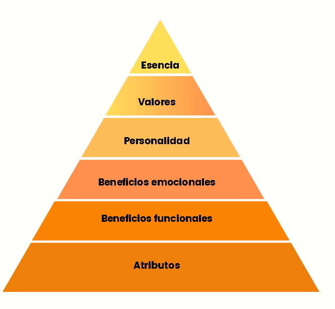 Una herramienta sencilla, pero muy potente: la pirámide de marca es un modelo que ayuda a definir de forma clara quién eres como marca, qué representas y cómo quieres que te perciban. Se construye desde lo más básico (atributos tangibles) hasta lo más profundo (esencia), y permite alinear todas tus comunicaciones bajo una misma identidad. Probablemente tendrás mil ideas de qué comunicar y cómo, y esta diversidad acabará creando confusión. Así que puesto que tu comunicación se tiene que construir sobre ideas claras, es una herramienta que no te puedes perder.
