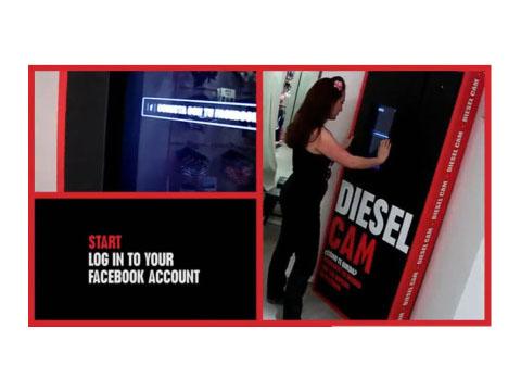 La agencia Fullsix está detrás de la idea de Diesel Cam: algunas de las tiendas de ropa de la marca han integrado unos cajeros con pantalla táctil y cámaras desde las cuales el cliente puede fotografiarse y compartir la imagen con sus amistades de Facebook al segundo.