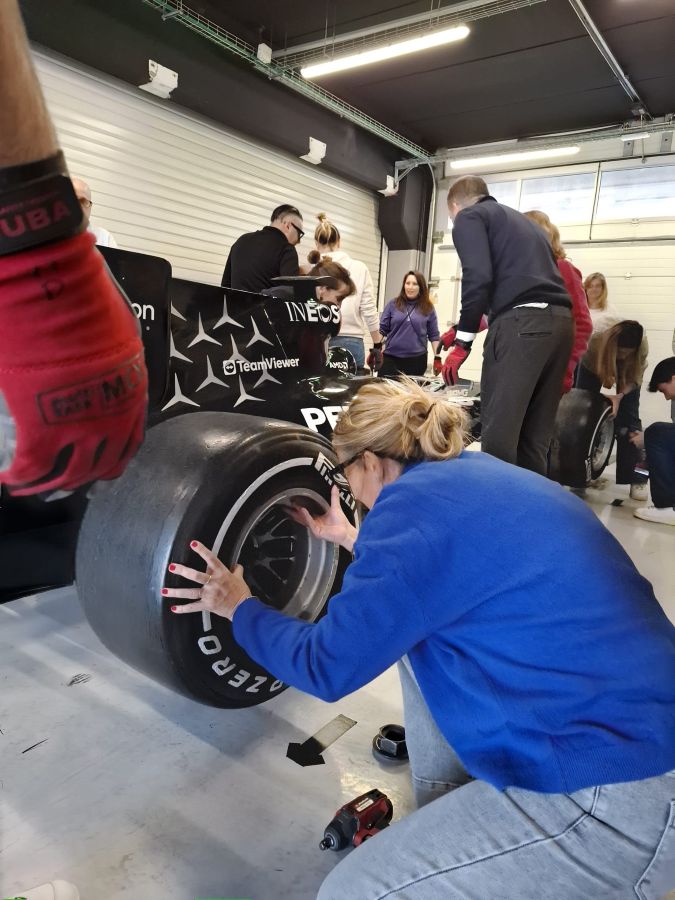 • Pit Stop Challenge, una actividad de team building donde los equipos compiten cambiando ruedas de un monoplaza.