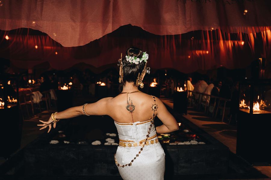 Estos dos elementos son necesarios en toda experiencia inmersiva, aunque el espacio añadió un plus. El evento coincidió con la reapertura del Four Seasons Formentor, y al mismo tiempo, funcionó para darle al espacio una dimensión más exótica. Se crearon diferentes escenarios con el objetivo de trasladar al invitado a Tailandia, a ese resort de lujo que es The White Lotus en la serie de HBO Max. Se utilizaron tejidos naturales, lino y algodón, en tonos representativos como el naranja o el verde, y decoraciones en madera o rafia.