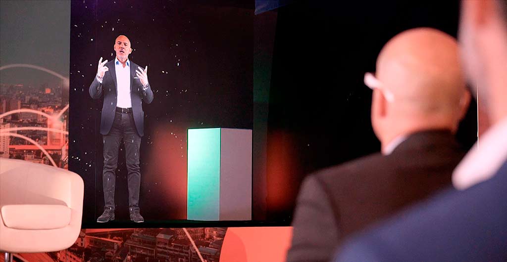 La empresa de tecnología utilizó los hologramas en el MWC haciendo posible una comunicación por holograma que demostró la calidad de conexión 5G: desarrollaron un proyecto que permitió al director general conversar e interactuar con su propia imagen holográfica en tiempo real y sin latencia. Días más tarde, la marca volvía a ejemplificar la eficacia del holograma en una reunión entre directivos y medios de comunicación.