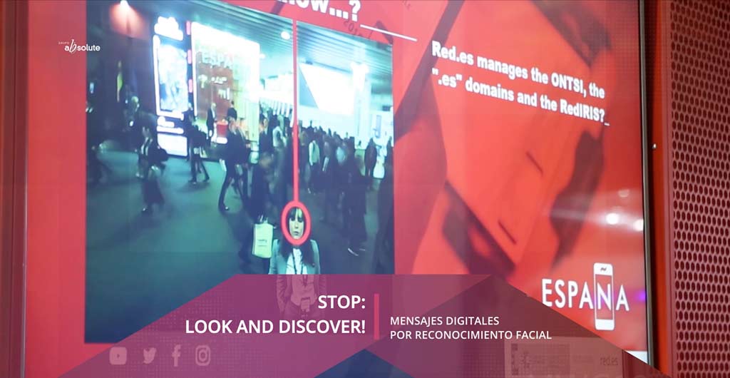 La agencia creó una dinámica sencilla con tecnología de reconocimiento facial que permitía interactuar con los visitantes en el MWC. La dinámica tenía por objeto dar los mensajes de RED.ES de forma sorprendente y personalizada. Cuando el visitante pasaba por la zona cercana a la entrada donde se ubicaba una pantalla y miraba hacia dicho espacio, el espectador se convertía en el protagonista de la pantalla con su imagen y un mensaje para él sobre RED:ES tipo ¿Sabías que…? Una dinámica que propiciaba un mayor impacto y recuerdo del mensaje. Esta tecnología permite personalizar el rostro del usuario con capas de imágenes superpuestas que provocan efectos sorprendente y divertido que  animan al público a querer llevarse una foto de recuerdo.