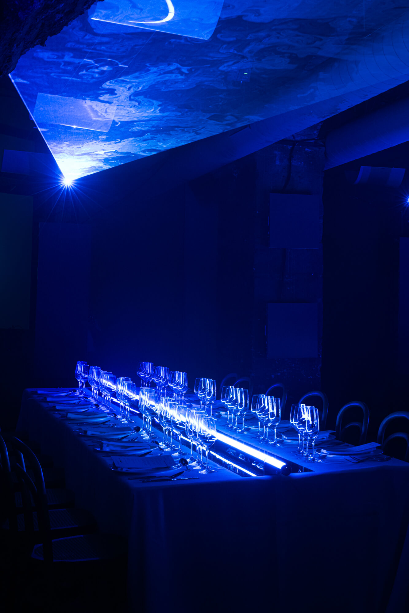 La experiencia gastronómica de ELEMENTS fue acompañada por un espectáculo audiovisual inmersivo producido por la agencia Onion Lab, donde cada elemento del menú se veía envuelto en una narrativa visual y multisensorial.